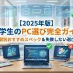 - 【2025年版】大学生のPC選び完全ガイド|学部別おすすめスペック&失敗しない選び方PC選びガイド 【2025年版】大学生のPC選び完… 続きを読む: 【2025年版】大学生のPC選び完全ガイド|学部別おすすめスペック&失敗しない選び方