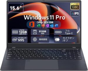 N150 4C/4TとLPDDR5 12GB+512GBで、ブラウジングやOffice中心に割り切った入門ノート。Windows 11 Pro、Wi‑Fi 6、約1.5kg。端子はUSB-A中心でmini HDMI、USB-CやPD充電は非対応の可能性。Office 2024の付属形態は要確認。