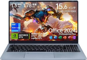 Windows 11 Proと(記載)MS Office 2024をプリインストール。14.1型FHD IPSと約1.25kgの軽さで、文書作成やネット中心なら十分。ただしCeleron J4125+8GBは重い作業には不向き。